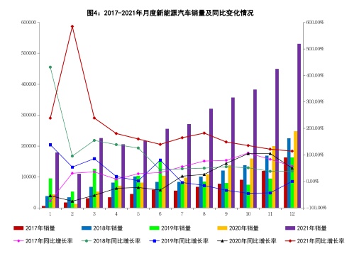 12月,新能源汽车产销分别完成51.8万辆和53.1万辆,同比分别增长1.2倍和1.1倍,市场渗透率为19.1%。分车型看,纯电动汽车产销分别完成43.4万辆和44.8万辆,同比均增长1.1倍;插电式混合动力汽车产销分别完成8.4万辆和8.2万辆,同比分别增长1.6倍和1.2倍;燃料电池汽车产销分别完成627辆和486辆,同比分别增长1.4倍和1.1倍。