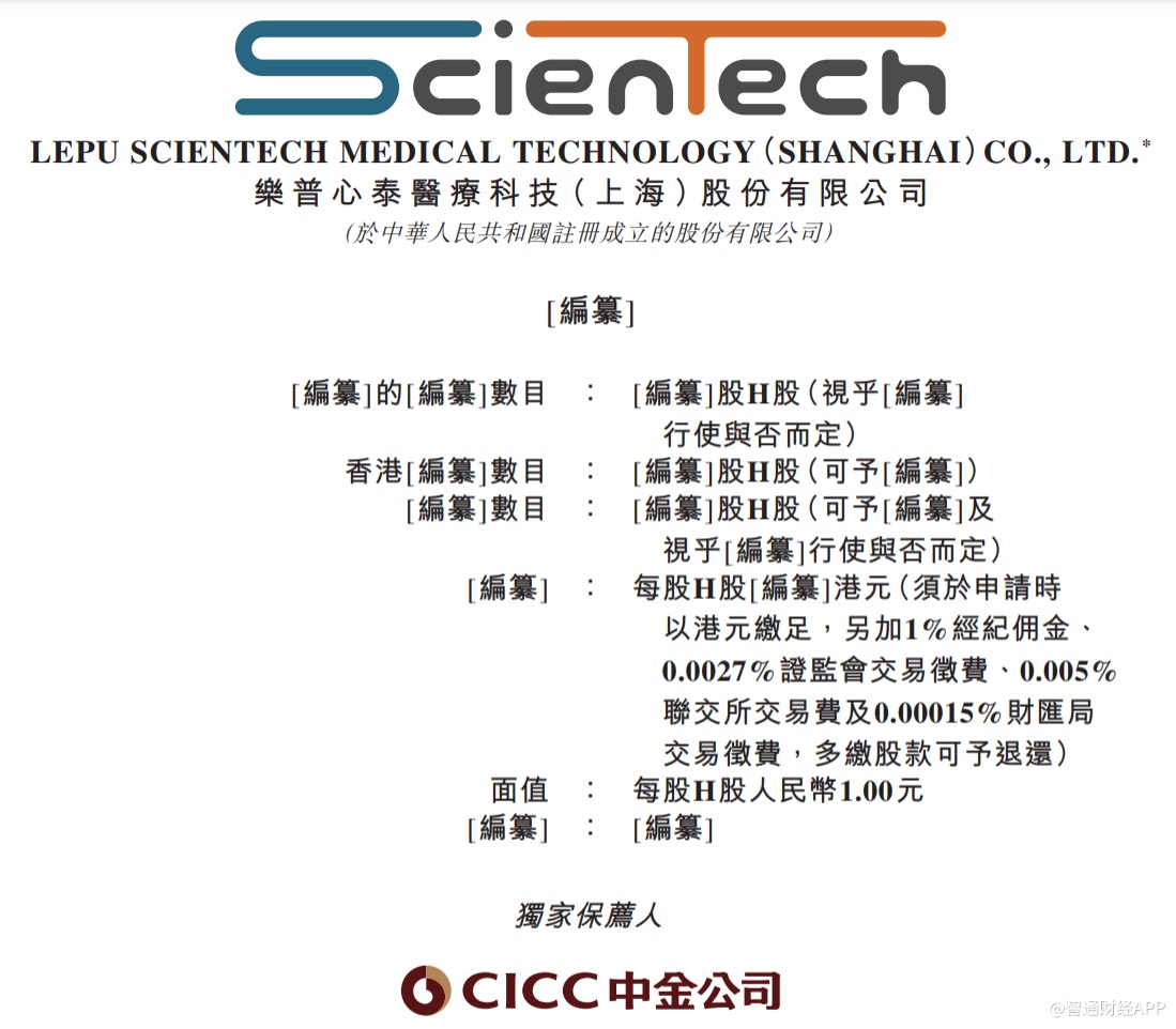 智通财经APP获悉,据港交所1月14日披露,乐普心泰医疗科技(上海)股份有限公司向港交所主板提交上市申请,中金公司为独家保荐人。值得注意的是,该公司曾于去年6月25日向港交所主板递交过上市申请,该申请现已失效。