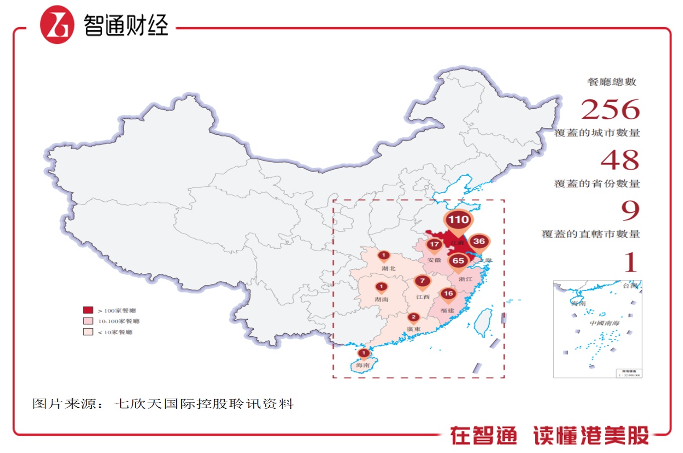 智通财经APP了解到,七欣天国际控股2009年于江苏成立,以海鲜及火锅餐厅进入市场,并以江苏为中心,将餐厅辐射周边省市,截至目前在9个省48个城市及一个直辖市经营256家餐厅,其中于江苏省的各线城市经营超过100家餐厅。此外,该公司2019年上线外卖业务,业绩由餐厅经营及外卖双业务驱动。