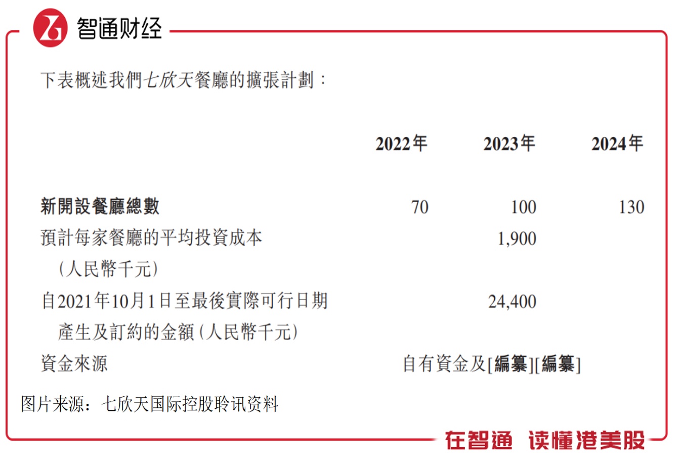客单价、翻台率以及同店收入都在稳步提升,七欣天国际控股每年增加的餐厅经营效益看起来还是不错的,该公司欲加速扩张速度,2022-2024年计划新开设70、100及130家餐厅,餐厅扩张速度分别为27.3%、30.7%及30.5%。而截止2021年9月,该公司账上现金仅为0.3亿元,难以支撑其扩张计划。