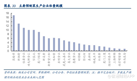 目前行业主要龙头基本达到10亿规模,包括蒸烩煮、聪厨(新湘厨)、佳宴食品、厦门绿进、信良记等,但相比于2000亿市场空间而言,市场格局极为分散,此外亿元级别企业较多,行业内平均企业规模在1500万左右,多承担代工厂任务。