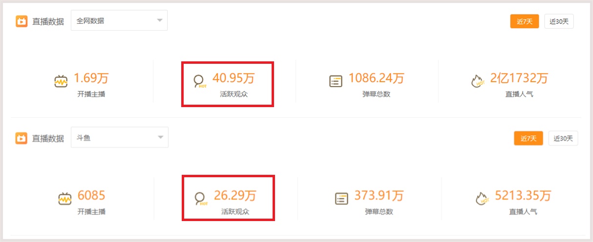 不仅如此,根据头榜显示的数据,斗鱼《永劫无间》板块的活跃观众数量高达26.29万,而该游戏全网活跃观众数为40.95万,也就是说斗鱼的活跃观众数量超过了其他直播平台的总和,处于绝对领先的地位。