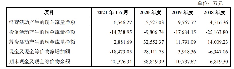 现金流方面,报告期内,该公司的经营活动产生的现金流量净额分别为4516.36万元、9767.77万元、5525.03万元、-6546.27万元,整体表现不太稳定。其中,2021年上半年经营活动产生的现金流量净额与净利润差异较大,主要原因是:随着市场需求的快速上涨以及订单的增加,公司进行相对较多的备货,以及2021年3月公司子公司美国通美承接AXT的销售团队及研发团队,由于外籍员工薪酬水平相对较高,应付职工薪酬有较大幅度提升。