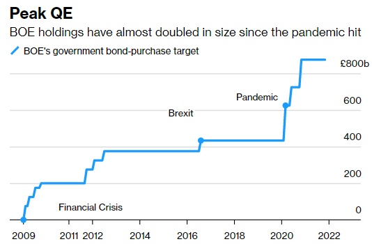 在英国,量化宽松政策的结束打破了英国央行刺激计划与政府财政支出之间的联系;英国央行的超宽松政策被控为货币融资,即央行直接为政府提供资金。