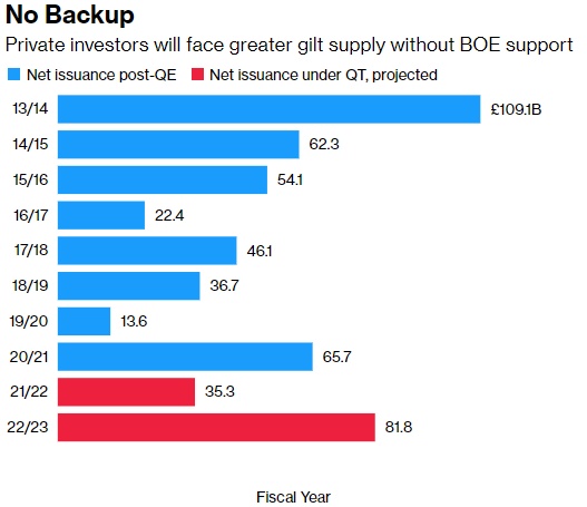 至关重要的是,随着英国政府发行大量国债,英国央行停止国债再投资将使债券市场在没有其他买家接盘的情况下,遭遇严重打击,进一步推高利率。