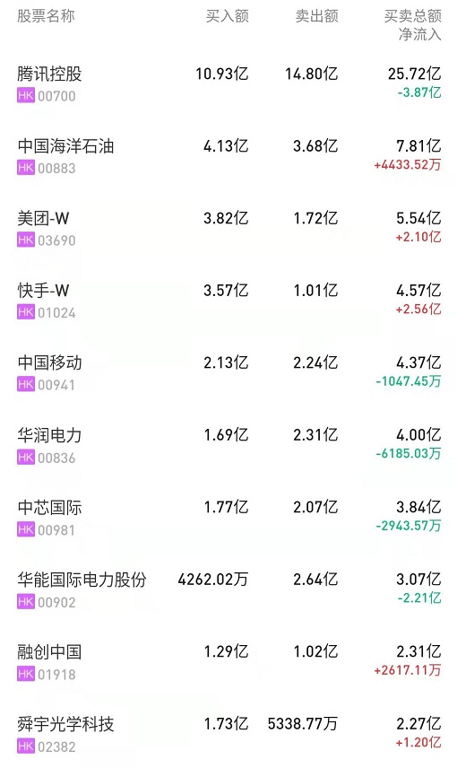 港股通(深)十大活跃成交股