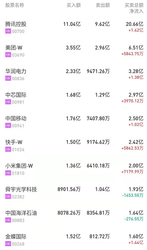 此外,金蝶国际(00268)、舜宇光学(02382)、中国移动(00941)分别获净买入1.43亿、1.05亿、9182万港元。