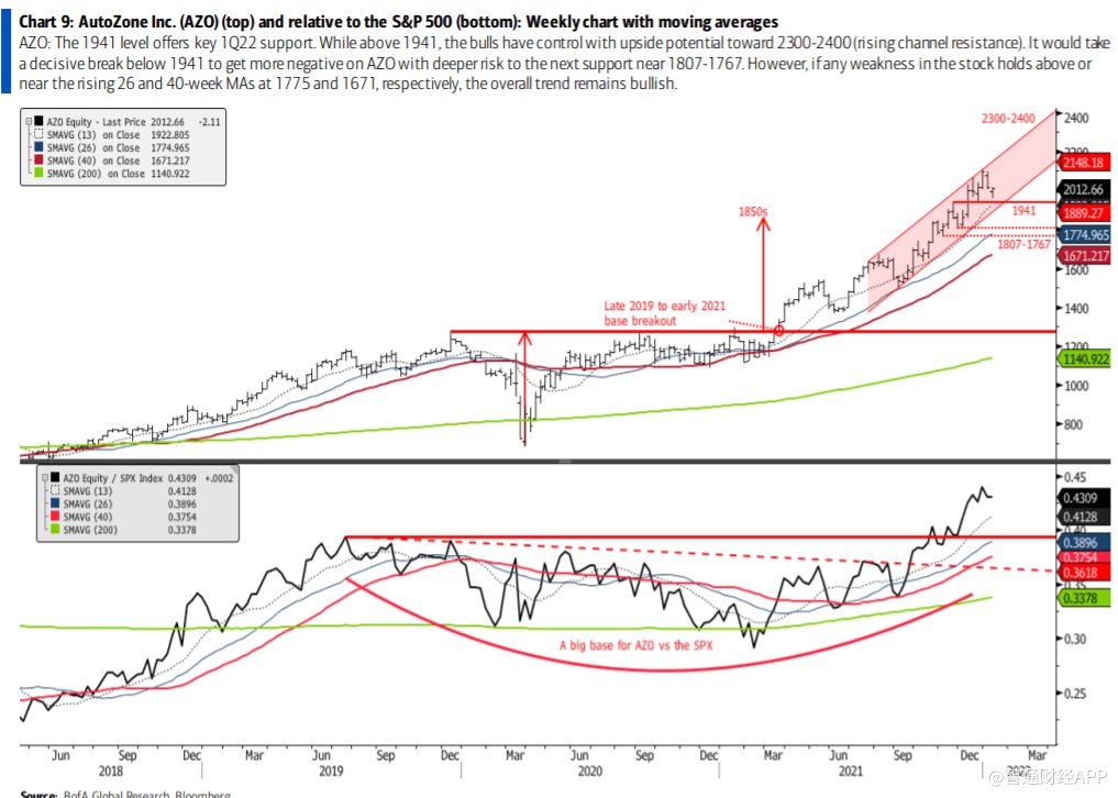 美银予以上9只股票“跑赢大盘”评级,但予汽车地带(AZO.US)“跑输大盘”评级。