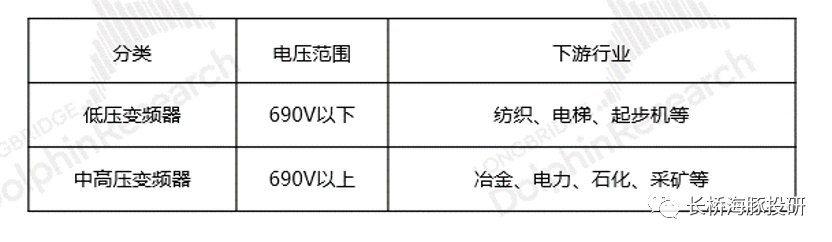 变频器的使用场景很广泛。其中低压变频器主要用于690V以下的场景,主要有纺织、电梯、起步机等下游行业;而中高压变频器主要用于690V以上的场景,主要是大功率的冶金、电力、石化等能耗较高行业。