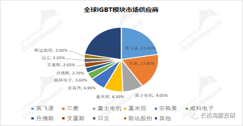 风电领域也是IGBT在新能源发电领域的重要应用领域之一,主要用于风电变流器中。比如根据产业链信息,在1.5MW双馈型风机中,风电变流器中约有20个左右的1700V/2400A的IGBT。