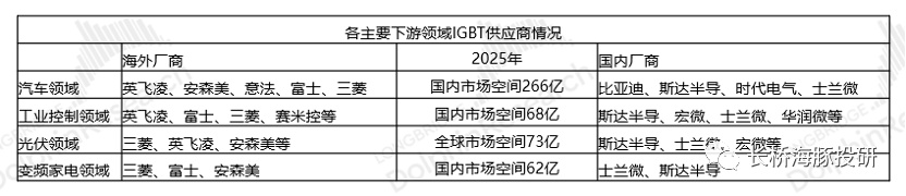 一、IGBT在国内的各市场空间