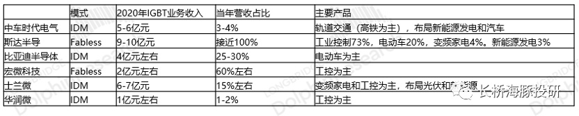 2.IGBT业务收入方面:斯达最为纯粹的龙头公司