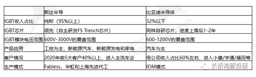 产品应用上:斯达半导的收入主要来自于工控领域,比亚迪半导体以汽车为主;