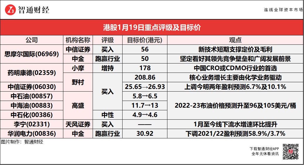 高盛将2022及2023年布伦特期油价格预测上调至96及105美元/桶,并预期今明年油价上升将带动亚洲油企产生显著的自由现金流,主要看好中石油(00857)、中海油(00883)。