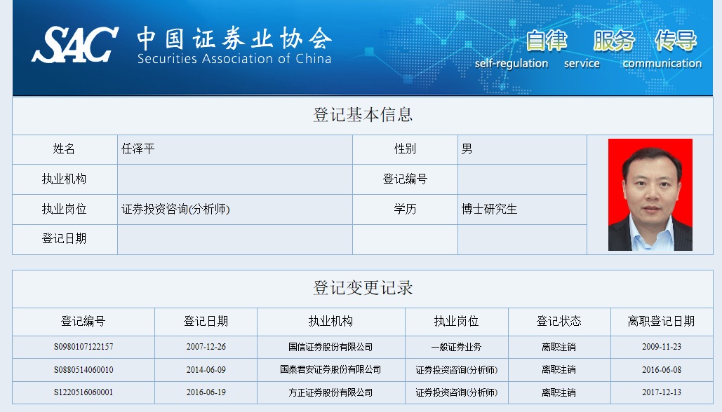 公开资料显示,2016年6月,前国泰君安(601211.SH)首席宏观分析师任泽平正式入职方正证券,任方正证券(601901.SH)首席经济学家及方正证券研究所董事总经理。 2017年11月,方正证券首席经济学家任泽平提出离职。 2017年12月,任泽平任恒大集团(03333)首席经济学家(副总裁级)兼恒大经济研究院院长。而在2021年3月份,任泽平离开恒大、加盟东吴证券并担任首席经济学家的消息被广泛报道。