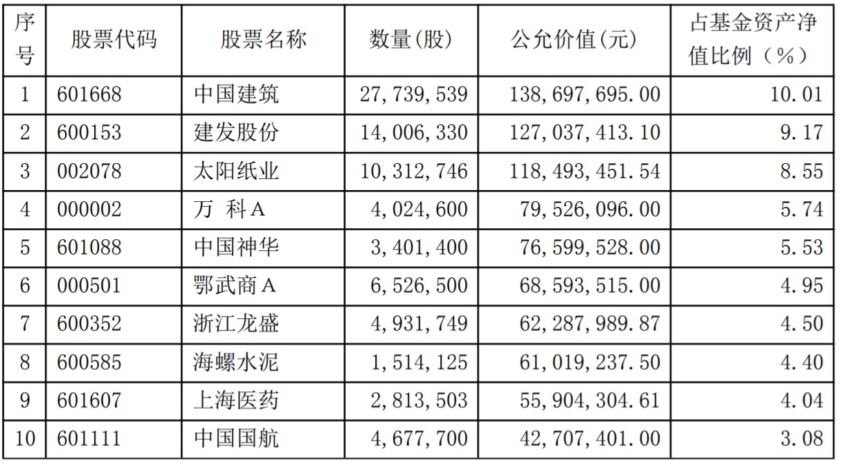 多支基金前十大持仓公布