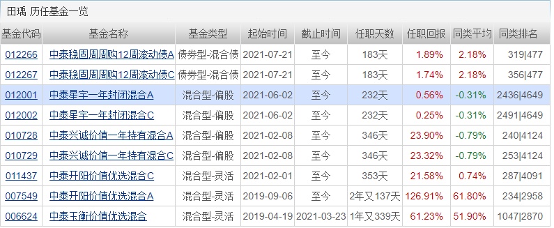 智通财经APP获悉,1月20日,田瑀管理的“中泰星宇一年封闭混合”和“中泰开阳价值优选混合”2021年第四季度公告出炉。公告显示截至本报告期末,中泰星宇一年封闭混合基金规模达13.66亿元,基金净值达1.0056。中泰开阳价值优选混合基金规模达18.89亿元,基金净值达2.2691,中泰开阳混合基金自成立以来回报率高达126.91%。