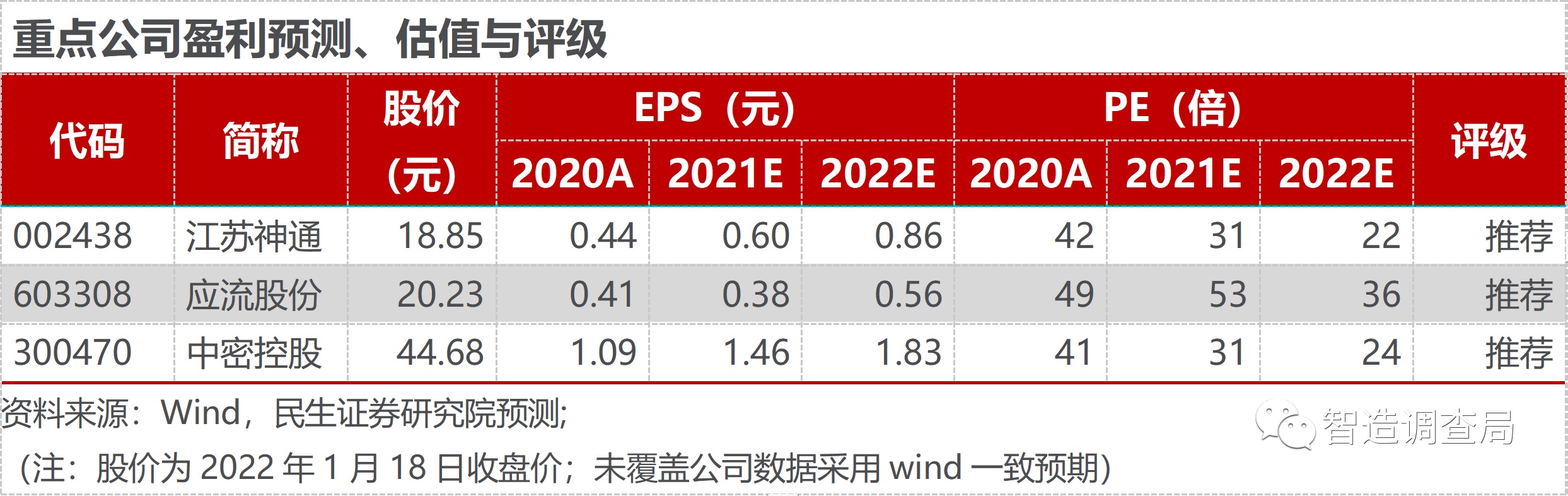 个月,且占地面积相对较小,是未来基荷能源的重要组成部分。核电产业链包括上游原料及设备供应、中游核电站的建设于运营,以及下游的发电及后处理。从产业链景气度看,核电产业链值得关注的环节包括:1) 核电机组核准进度; 2) 核级阀门领域; 3) 四代机组推进速度。“碳中和”背景下,核电不可或缺。重点推荐:江苏神通(002438.SZ)、应流股份(603308.SH)、中密控股(300470.SZ)。