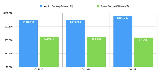 通用电气此前曾表示,航空部门的积压订单正在增加。截至2021年第三季度末,航空部门积压订单总额为1227.5亿美元,高于第二季度末报告的1137.8亿美元,也高于2020财年第三季度末的1133.9亿美元。积压订单的持续增长意味着,该部门未来的营收和盈利或许将有所回升。