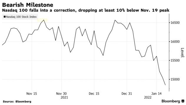 值得一提的是,纳斯达克100指数在去年11月触及纪录高位后便迅速回跌;此外,覆盖面更广的纳斯达克综合指数也跌破阈值,进入熊市。
