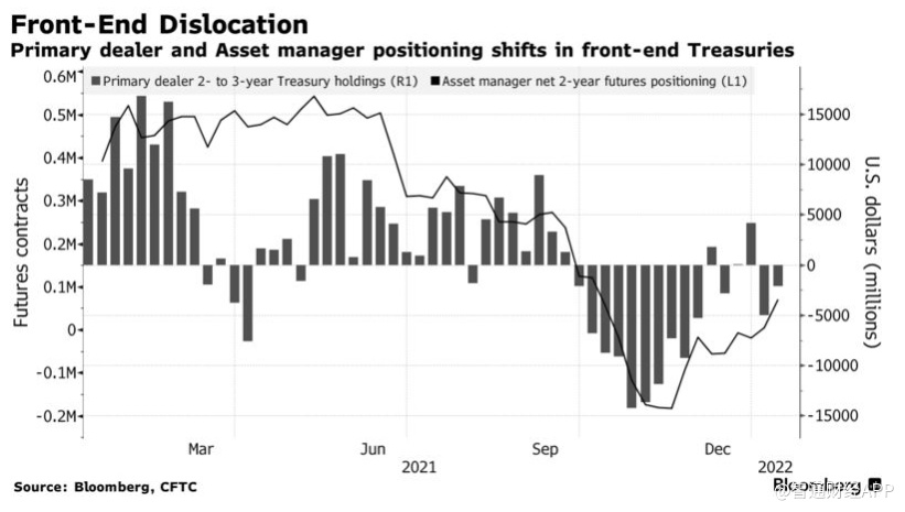 对于期限较短的证券而言,买卖价差略有扩大,这是流动性下降的信号。他们表示,收益率曲线前端的估值也受到了交易员库存增加的压力,如果他们的库存继续增加,这种情况可能会持续下去。