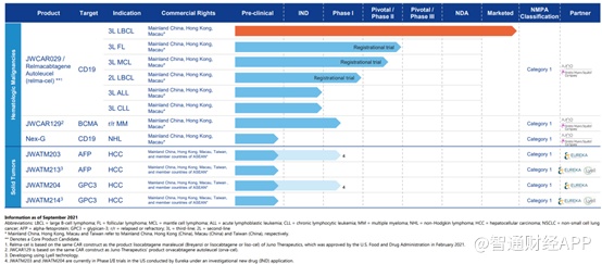 公开资料显示,药明巨诺目前公有7条研发管线,其中Relma-cel已于2021年9月获批上市,是国内第二家上市的CAR-T企业。