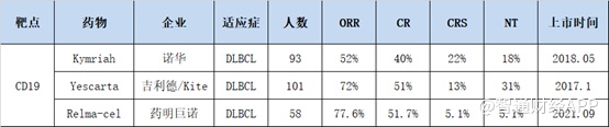 据已获批的针对大B细胞淋巴瘤(DLBCL)的CAR-T效果来看,药明巨诺为当前的同类最佳。 数据显示药明巨诺的ORR高达77.6%,CR为51.7%,这一数据领先于吉利德/Kite的72%、51%及诺华的52%和40%。