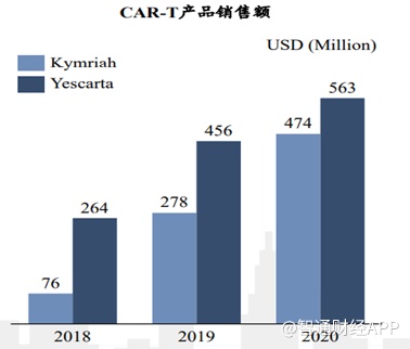 尽管诺华和吉利德/Kite数据并没有药明巨诺的好,但这两家产品上市后均取得十分不错的销售额。数据显示,2018至2020年,Kymriah的销售额由 0.76亿美元升至4.74亿美元,复合年增长率为149.74%;Yescarta的销售额则由2.64亿美元升至5.63亿美元,复合年增长率为46.03%。