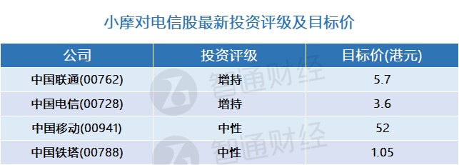 智通财经APP获悉,小摩发布研究报告称,考虑到中国联通(00762)股息政策具有潜在吸引力,加上H股与A股价格大幅折让逾60%,联通H股价格今年仍有追落后空间,假设今年行业收入增长将保持约8%,相信受5G贡献及新业务持续快速增长的推动下,行业资本开支可能同比增长1%并达到顶峰,行业首选为中国联通,其次为中国电信(00728)、中国移动(00941),最后为中国铁塔(00788)。