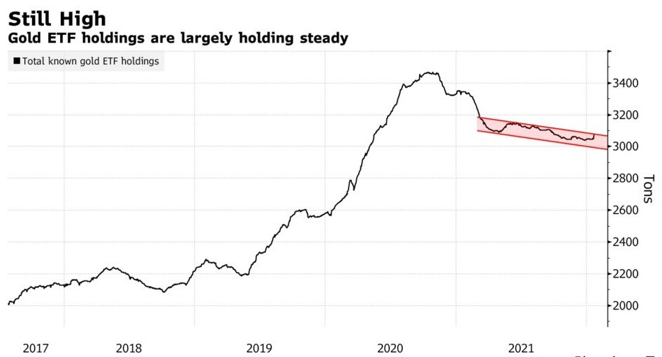 多数分析师预计今年金价将表现不佳,原因是担心金价和黄金持有量会受鹰派政策而出现抛售,比如2013年美联储暗示将收紧政策,投资者对黄金失去信心。然而,金价目前仍保持在两个月来的高点附近,ETF的持有量仍远高于疫情前的水平。
