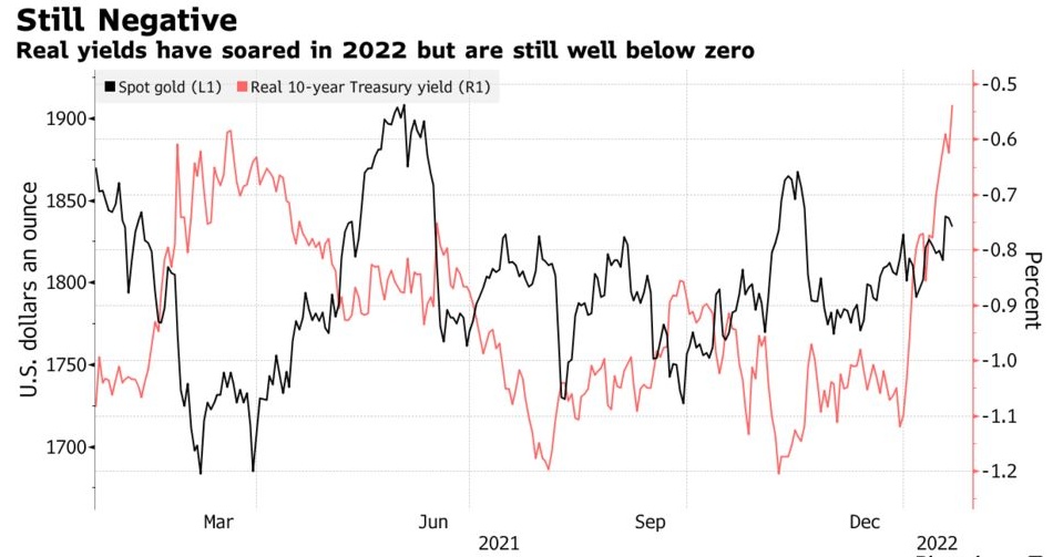 基金经理坚持持有黄金的一个关键原因是,他们认为在美联储努力收紧政策以推动利率高于通胀之际,实际收益率仍为负。对高通胀的担忧也扶助金价,美国12月CPI增速为40年来新高。