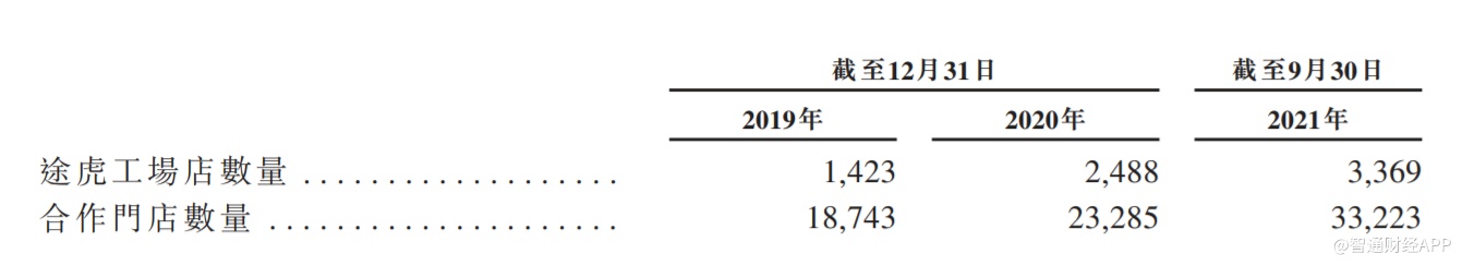 2019、2020年,途虎养车合作门店数量分别为18743家、23285家,截至2021年9月30日,途虎养车在全中国的合作门店高达33223家。即使2020年疫情爆发,但无论是途虎工厂店亦或是合作门店数量,均呈快速增长的态势。