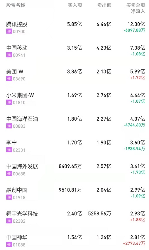 此外,小米集团-W(01810)、中海油(00883)分别获净买入1.3亿、2629万港元。而李宁(02331)遭净卖出1938万港元。