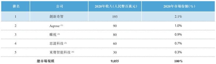 通过策略性聚焦细分赛道,创新奇智现已发展成为国内制造业人工智能解决方案市场第一大人工智能技术驱动型解决方案提供商,于2020年市场份额达2.1%,为第二名的两倍。由此随着此次公司成功上市,创新奇智也将迎来港股“AI+制造”第一股的称号。