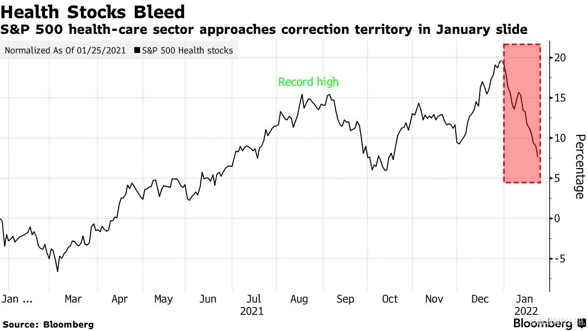 由于投资者对加息和更大范围的市场崩盘感到担忧,美股医疗保健板块月初至今已下跌逾9%,并可能出现2009年以来最严重的单月跌幅。 相比之下,去年的涨幅为24%。