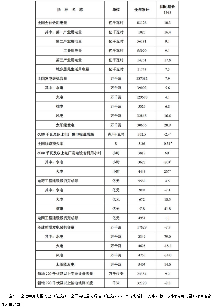 2021年,全国6000千瓦及以上电厂发电设备利用小时3817小时,比上年同期增加60小时。全国主要发电企业电源工程建设投资完成5530亿元,同比增长4.5%,其中,水电988亿元,同比下降7.4%。电网工程建设投资完成4951亿元,同比增长1.1%。