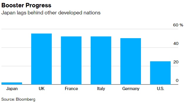 根据日本政府的数据显示,截至周二,约有260万人接种了第三针新冠疫苗,仅为该政府原先在1月份制定的目标的18%。而据媒体统计的数据,到目前为止,日本的加强针接种计划仅限于护理工作者和老年人,这意味着该国总人口里只有2.1%人接种了加强针,而这一比例在发达国家中是最低的。