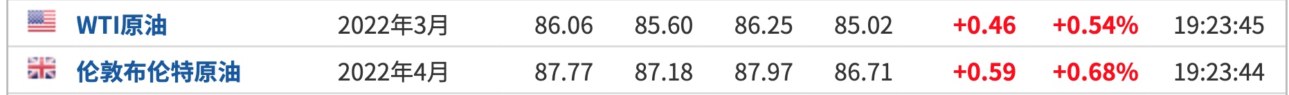 3. 截至发稿,WTI原油涨0.54%,报86.06美元/桶。布伦特原油涨0.68%,报87.77美元/桶。