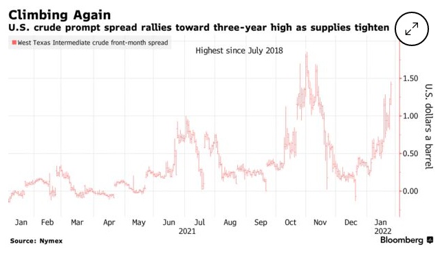 由于供应短缺,美国原油期货与现货间的价差出现反弹