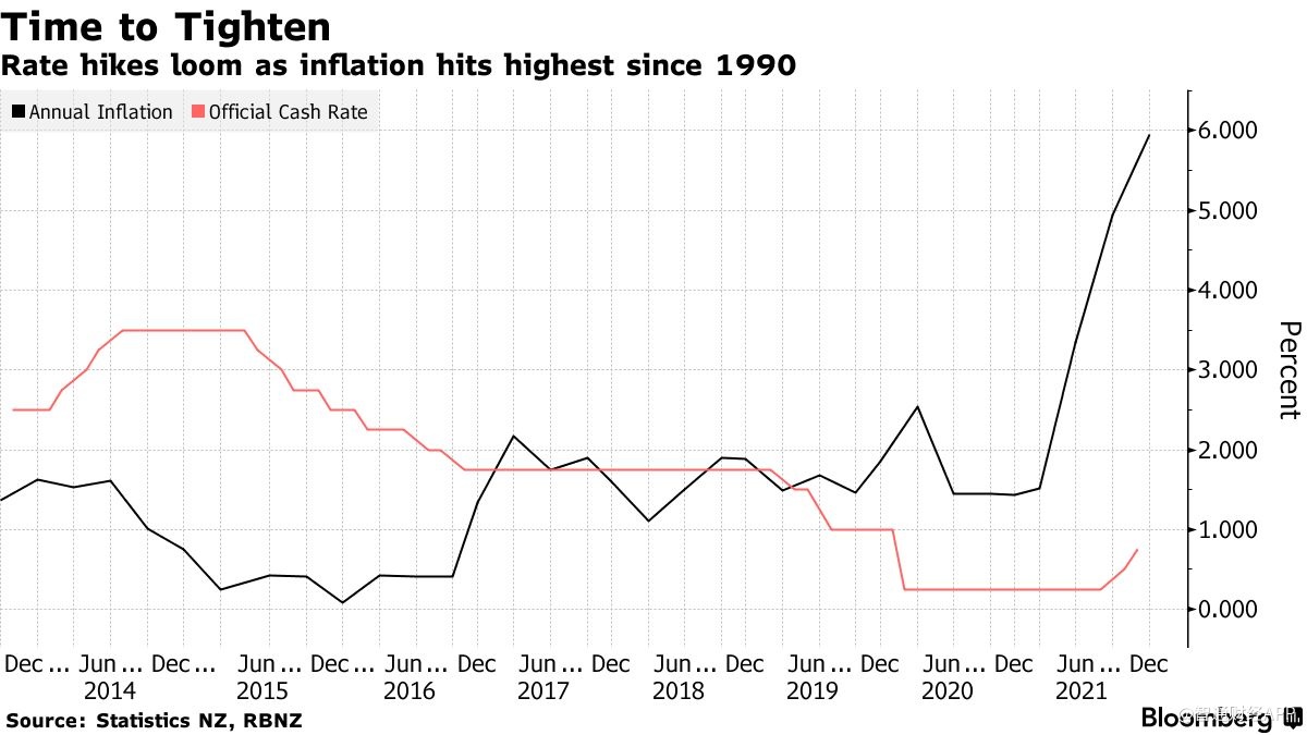 这一结果强化了外界的预期,即新西兰联储将在2月23日的会议上加息,这将是五个月来的第三次。新西兰联储的目标是将通胀率维持在1-3%区间的中点附近。和美联储一样,新西兰联储也正在努力应对物价上涨、劳动力市场紧张和供应链混乱等问题。