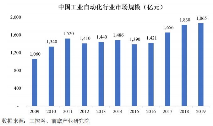 随着政策的推进,技术的创新,国产工业自动化设备制造业市场规模不断扩大,进口替代趋势愈发明显。根据中国工控网《2019年中国自动化及智能制造市场白皮书》和MIR Databank数据整理,2004年-2019年,我国自动化行业市场规模由1060亿元增加至1865亿元,对应复合增长率超过7%。