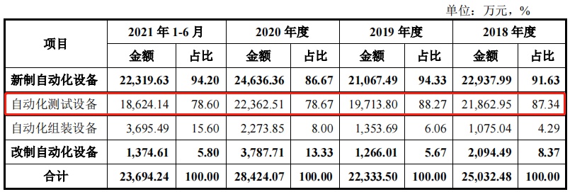 值得一提的是,智立方亦是苹果(AAPL.US)公司光学识别、光学感应细分领域的自动化测试设备核心供应商。2018年-2021年上半年,智立方对苹果公司的直接及间接订单收入占比分别为82.61%、75.83%、68.82%、74.51%。就收入占比不难看出,智立方产品的终端应用领域主要集中于以苹果为主的消费电子领域。