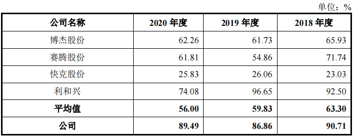 前文提到,智立方的业绩较为依赖苹果公司。而若将范围扩大,期内公司向前五大客户的销售占比则更是达到了90.71%、86.86%、89.49%、84.95%。对比同行,智立方的客户集中度之高可谓是“独一档”。根据披露,2018年-2020年,同行业可比公司的前五大客户销售占比平均值在63.3%、59.83%、56%。