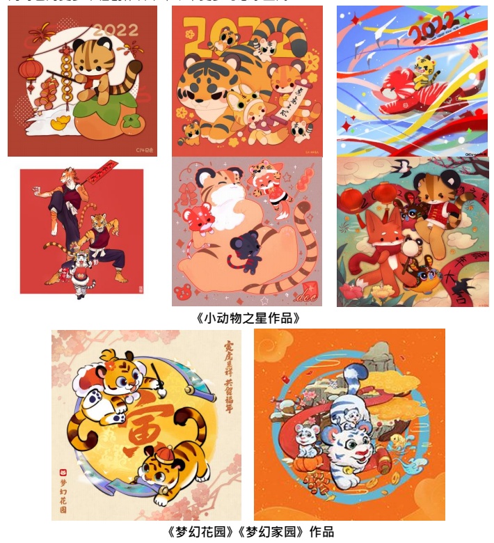 另外8款数字艺术藏品,则是来自于创梦天地旗下的三款国民游戏——《小动物之星》《梦幻花园》《梦幻家园》的创作者原创设计:巧妙地将“虎年”与各款游戏的代表性元素、画风融合,活泼可爱、年味十足。这是创梦天地在坚持以用户为本、给用户带来快乐的初心的同时,真正意义打造的一场全民参与的“虎年阖家欢”。