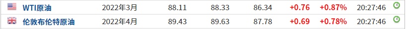 3. 截至发稿,WTI原油涨0.87%,报88.11美元/桶。布伦特原油涨0.78%,报89.43美元/桶。