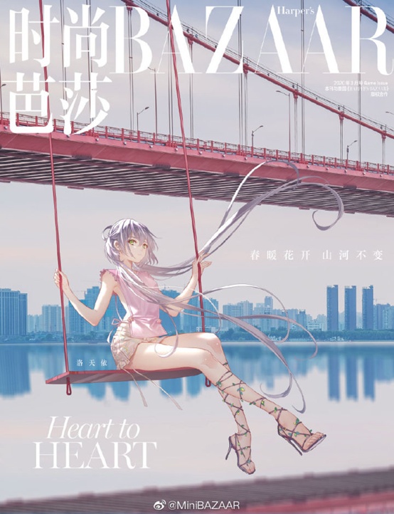 与此同时,也有公司敏锐嗅到了二次元文化逐渐变得普及的中国市场,2012年,国内首位虚拟偶像歌手洛天依诞生,其也是国内最早实现盈利的虚拟歌手,如今仍然高频地活跃于直播、舞台、时尚杂志电子刊中——2021年2月11日,在《2021年中央广播电视总台春节联欢晚会》与月亮姐姐、王源共同表演少年歌舞《听我说》。