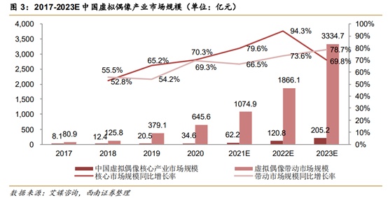 然而,随着时代的变迁和发展,虚拟偶像从日本的“舶来”逐渐转向本土发展,再进一步衍生出更广阔的市场,频频引来了资本的追捧。