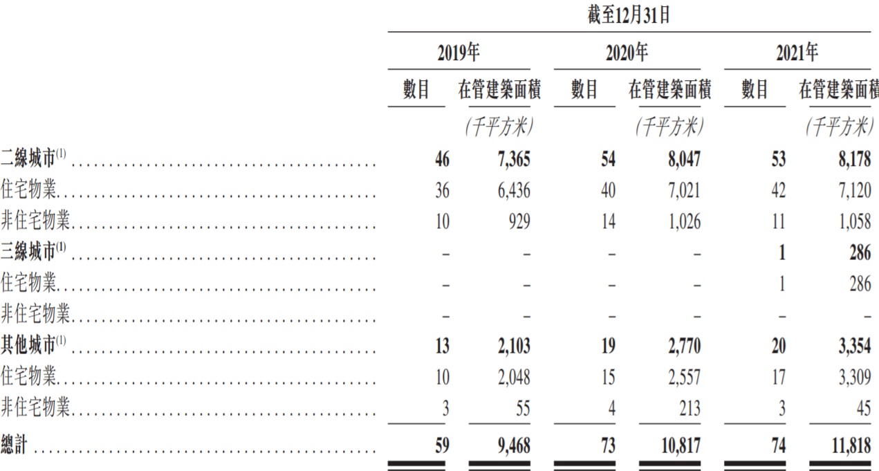 公司在管物业的总建筑面积由截至2019年12月31日的约950万平方米增加至截至2020年12月31日的1080万平方米,并进一步增加至截至2021 年12月31日的1180万平方米,复合年增长率为11.7%。