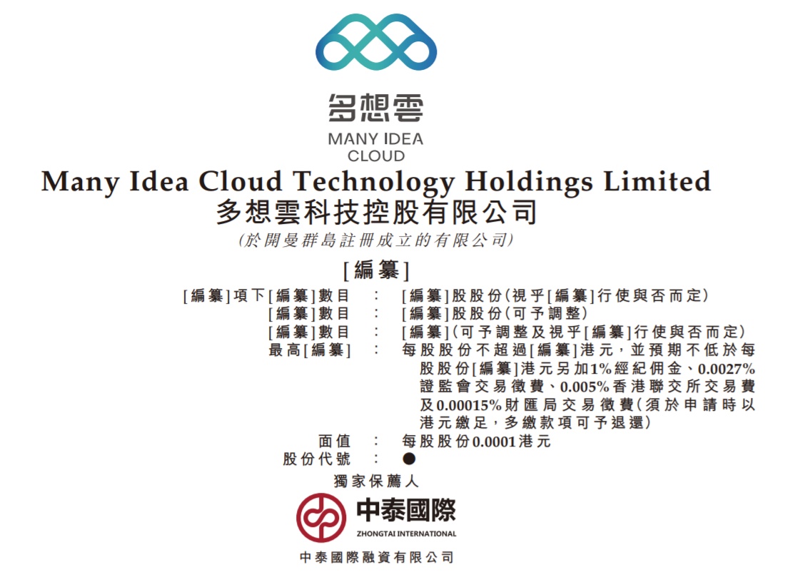 智通财经APP获悉,据港交所1月31日披露,多想云科技控股有限公司向港交所主板提交上市申请,中泰国际为独家保荐人。