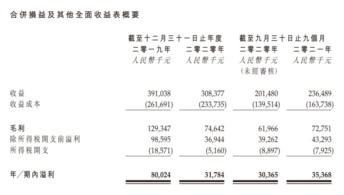 在2019年、2020年截至12月31日年度,多想云分别实现收入3.91亿元、3.08亿元,溢利0.80亿元、0.32亿元。而在2020年、2021年截至9月30日前三季度,多想云分别实现收入2.01亿元、2.36亿元,溢利0.30亿元、0.35亿元。